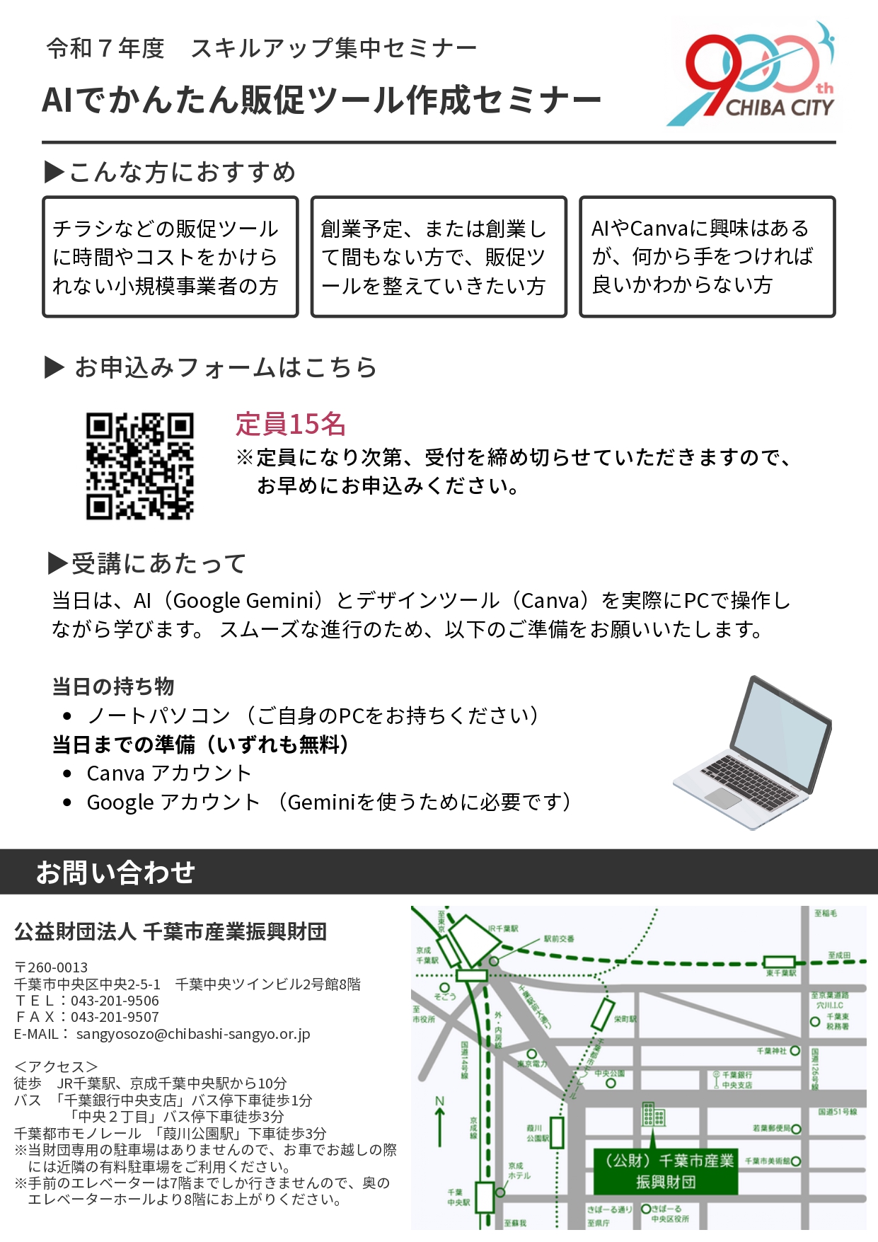 本セミナーでは、AIツール「Gemini」とデザインツール「Canva」を活用し、販促物を効率的に作成する基本のステップを学びます。