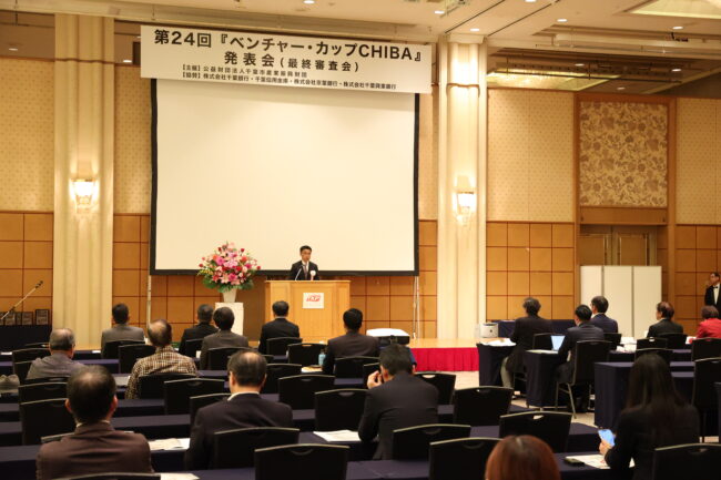 令和7年11月20日、第24回『ベンチャー・カップCHIBA』発表会が開催され、【ビジネスプラン部門】のプレゼンテーション審査までを勝ち抜いたファイナリスト5者及び【ビジネスアイデア部門】の受賞者4者が、来場者123名に対してプレゼンテーションを行ったほか、発表会後の交流会では各プランの事業化に向けたビジネスマッチングの機会といたしました。